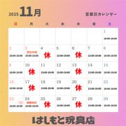 営業日カレンダー(2025年11月)★11月  3日(月)文化の日 祝日営業 10:00~18:00★11月  4日(火)振替店休日★11月24日(月)振替休日 祝日営業 10:00~18:00★11月25日(火)振替店休日皆…