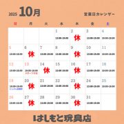 営業日カレンダー(2025年10月)★10月13日(月)スポーツの日 祝日営業 10:00~18:00★10月14日(火)振替店休日★10月19日(日)新潟にしかん産業祭(10:00~15:00)店舗営業 10:00~18:0…